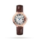 Ballon Bleu de Cartier watch. 33 mm. self-winding mechanical movement. Case in rose gold 750/1000. fluted crown set with a blue sapphire cabochon. silvered guilloché and lacquered opaline dial. 12 Roman numerals. sword-shaped hands in blued steel. sapphire crystal. strap in alligator skin. ardillon buckle in rose gold 750/1000. Case dimensions: diameter: 33 mm. case thickness: 10.16 mm. water-resistant to 3 bar (approx. 30 metres).
