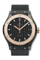 Hublot Classic Fusion Automatic 45mm Mens Watch 511.CO.1781.RX Carbon Fiber Black Dial 18k Rose Gold Bezel Date Feature 42 Hour Power Reserve Self-winding Automatic Movement Hublot Caliber HUB1112 Vibrations Per Hour: 28.800 Polished Black Ceramic Case Black Lined Rubber Strap Scratch Resistant Sapphire Crystal 50 Meters / 165 Feet Water-Resistant 45mm 1 3/4 Case. 7 Adjustable Strap Sapphire Crystal Exhibition Case Back