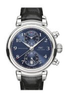 Silver-tone stainless steel case with a black alligator leather strap. Fixed bezel. Blue dial with silver-tone hands and Arabic numeral hour markers. Minute markers around the outer rim. Dial Type: Analog. Date display at the 6 o’clock position. Chronograph – sub-dials displaying: two – 60 second and 30 minute. IWC Calibre 89361 automatic movement with a 68-hour power reserve. Scratch resistant sapphire crystal. Case size: 42 mm. Case thickness: 14.5 mm. Round case shape. Water resistant at 30 meters / 100 feet. Functions: date. hour. minute. second. Watch label: Swiss Made. IWC Da Vinci Blue Dial Automatic Mens Chronograph Watch